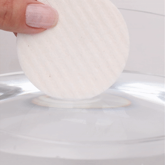 LastRound is naturally quite stiff, but it becomes soft and wonderful to use when you add a little water. Squeeze out any excess before adding your remover, toner, or other products (don’t worry, they won’t get diluted and the round absorbs just the right amount).